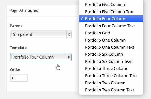 You can change the portfolio template very easily! Any of our portfolio layouts can utilize any of the 1-6 column layouts. Follow the steps below to change out the template.